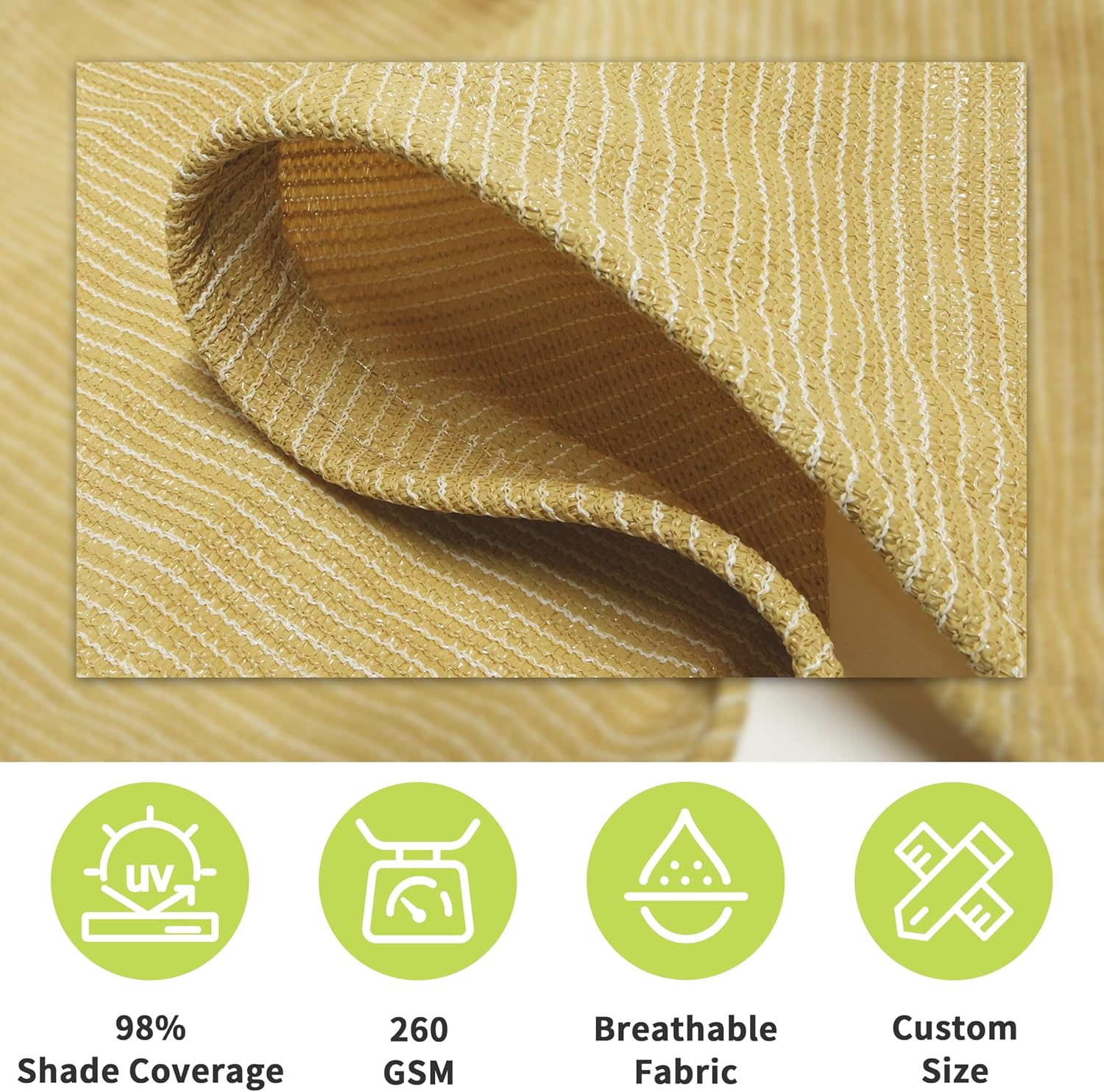 Royal Shade Heavy Duty 18' x 20' Beige Sun Shade Rectangle Pro Ring Shade Sail, 260 GSM Commercial Grade UPF50 Sunshade, Reinforced Corners & Edges - 5 Years Warranty (We Make Custom Size)