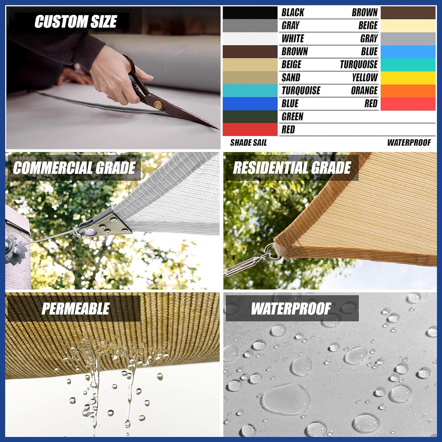 ShadeMart 12' x 20' Brown Sun Shade Sail UPF50 Rectangle Canopy Fabric Cloth Screen smTAPR1220, Water and Air Permeable & UV Resistant, Heavy Duty, Carport Patio Outdoor - (We Customize Size)