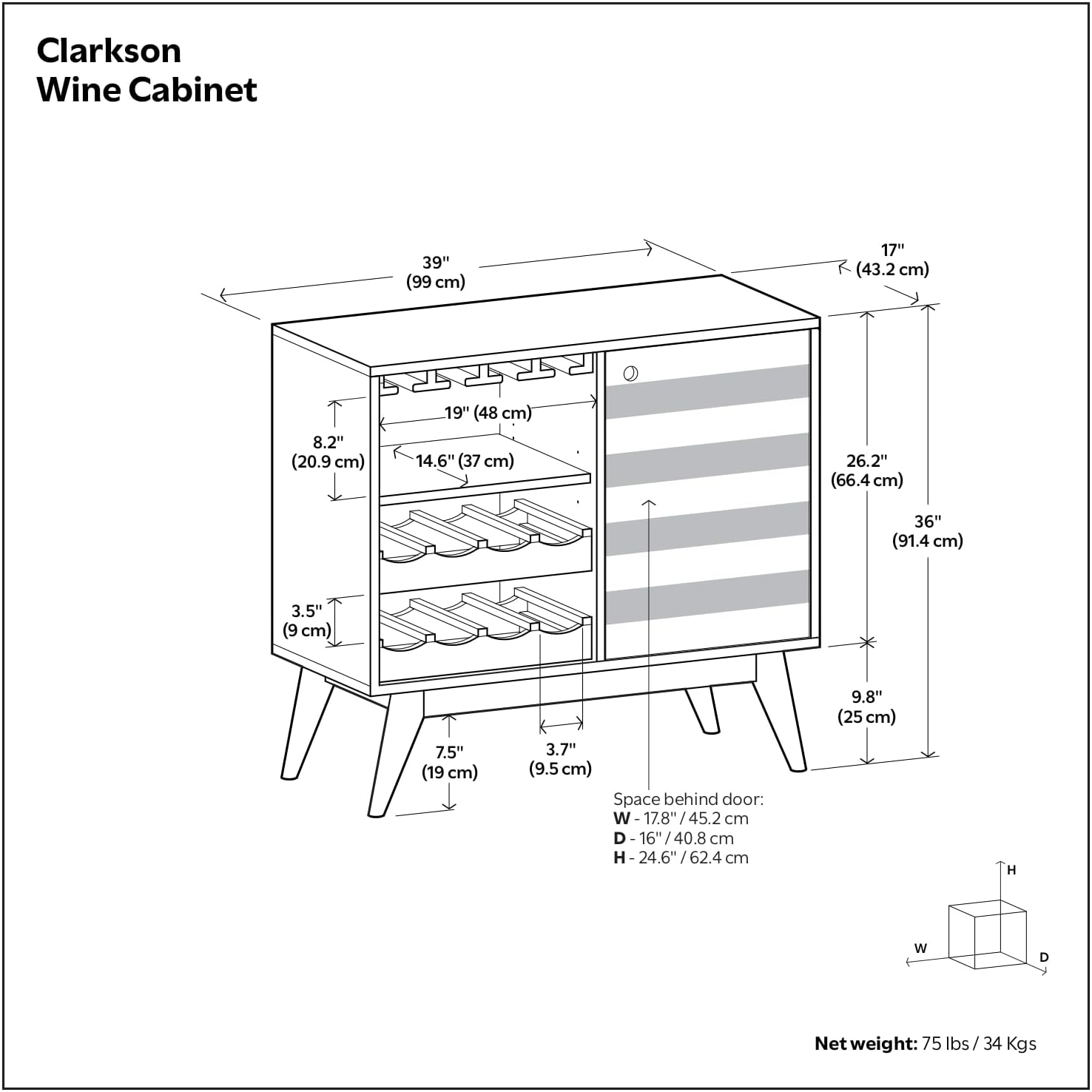 Keep your glasses and vintages in one place with the Clarkson Wine Cabinet. The wine cabinet features a built-in stemware rack to hang your wine glasses and snifters and a wine rack that stores eight bottles. Handcrafted from solid acacia wood, the refined design provides generous hidden storage behind the side cabinet with discreet cut out handles creating a streamlined look and a dark brown accent detail.